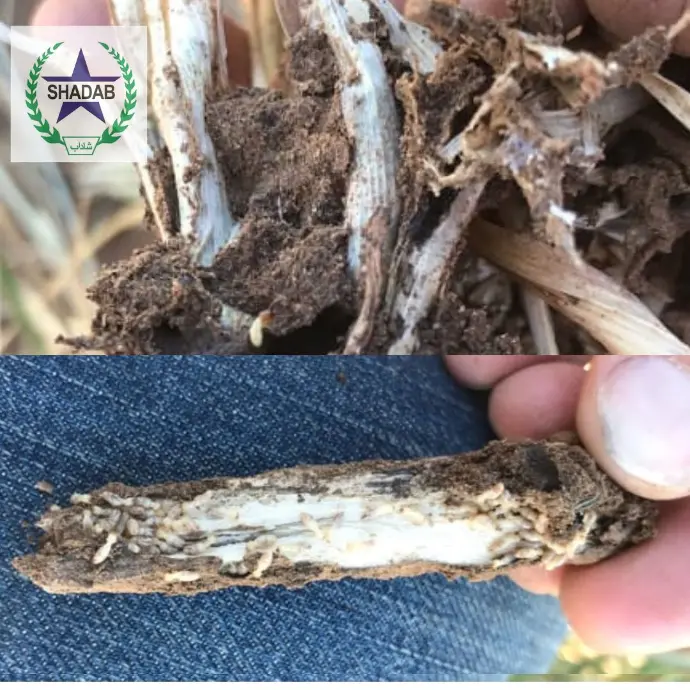 Termites, scientifically classified under the genus Odontotermes spp, are a highly successful group of insects that inhabit nearly all terrestrial environments, with the exception of Antarctica. Their colonies can vary significantly in size, ranging from a few hundred members to vast communities comprising millions of individuals. Notably, termite queens possess the longest lifespan among insects, with some individuals living between 30 to 50 years. Often referred to as "silent destroyers," these insects have a remarkable ability to consume wood, flooring, and even wallpaper without being detected.The damage caused by termites is particularly detrimental to agricultural crops, such as canola, as they create tunnels beneath the soil, affecting the plant's root system and leading to its eventual death. This underground mining behavior not only compromises the structural integrity of the plants but also poses a significant threat to crop yields, necessitating effective management strategies to mitigate their impact on agriculture.They can be controlled by the use of FMC Biflex.
