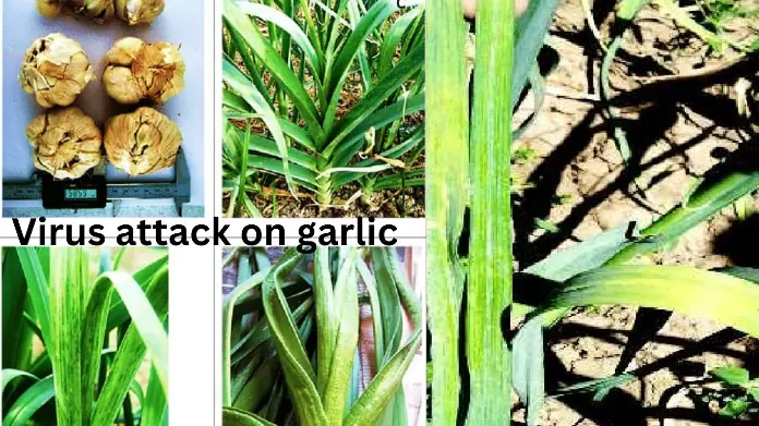 اس وائرس سے وابستہ علامات میں کلوروٹک موٹلنگ یا لکیروں کے ساتھ پتوں پر موزیک نمونوں کا نمودار ہونا شامل ہے۔ مزید برآں، متاثرہ پودے رکی ہوئی نشوونما اور بلب کے سائز میں کمی کو ظاہر کر سکتے ہیں۔ ان علامات کا کارآمد ایجنٹ ایک وائرس ہے، جو بنیادی طور پر افڈس کے ذریعے منتقل ہوتا ہے۔ یہ قابل ذکر ہے کہ انفیکشن اویکت رہ سکتے ہیں، کوئی ظاہری علامات نہیں دکھاتے ہیں۔ لہسن میں، انفیکشن اکثر دوسرے وائرسوں کے ساتھ مل کر دیکھے جاتے ہیں، جیسے پیاز کے پیلے رنگ کے بونے۔ اس مسئلے کو سنبھالنے کے لیے، یہ مشورہ دیا جاتا ہے کہ وائرس سے پاک لونگیں لگائیں جو وائرس سے پاک ماحول میں میریسٹیم ٹپ کلچر کے ذریعے تیار کیے گئے ہیں۔